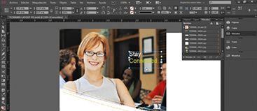 Правила работы в программе Adobe InDesign. Преподаватель показывает студентам, как работать с текстом, разбивать на полосы, подбирать фон, создавать подложки, выделять рубрики, делать вставки. Знакомство с панелью инструментов.